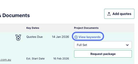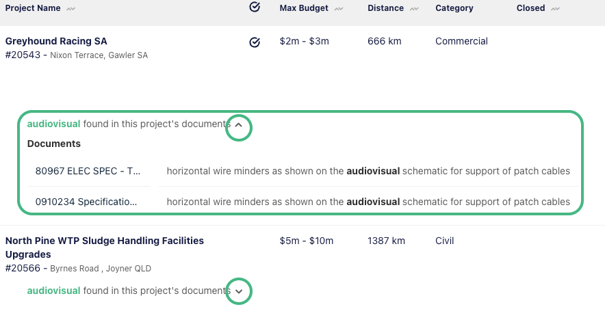 If you have Speci-Finder keywords set up, you can quickly preview any result matches from within the project slider, saving you time when qualifying opportunities.