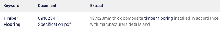 Search results have a preview feature, so you can see a snippet of the match found in the project documents.