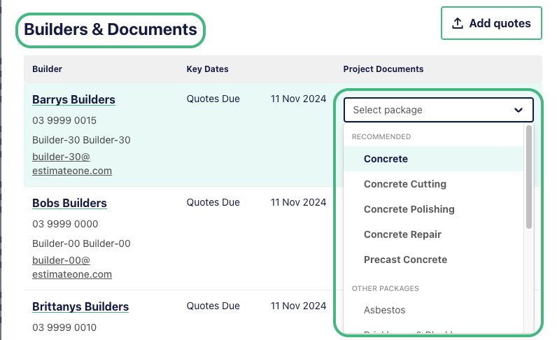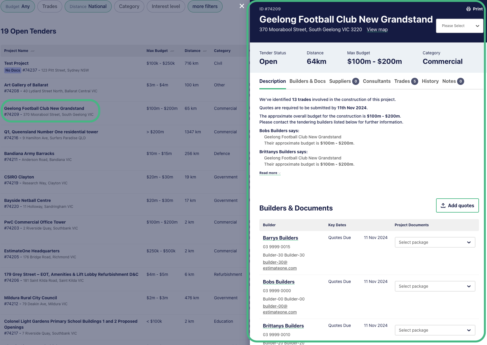 Projects are loaded by tendering builders, and the Noticeboard will default to showing all available publicly listed projects.